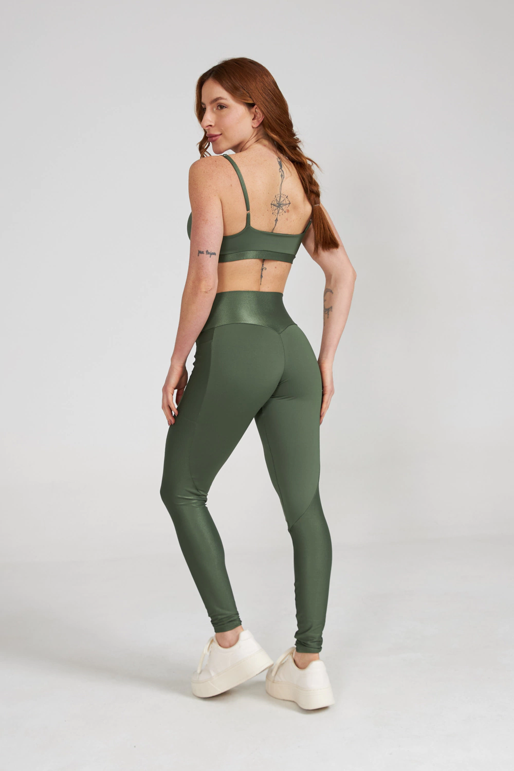 Calça com cintura alta, cós largo com recorte empina bumbum, bolsos nas palas laterais.
